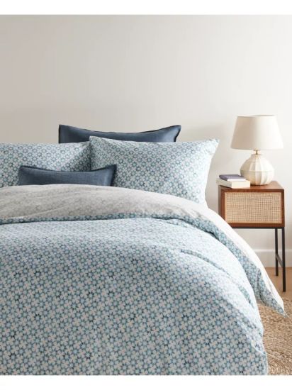 - This fresh and pretty reversible duvet cover set features a mosaic tile print in shades of blue on the face and neutral on the reverse. It's made from naturally breathable cotton.